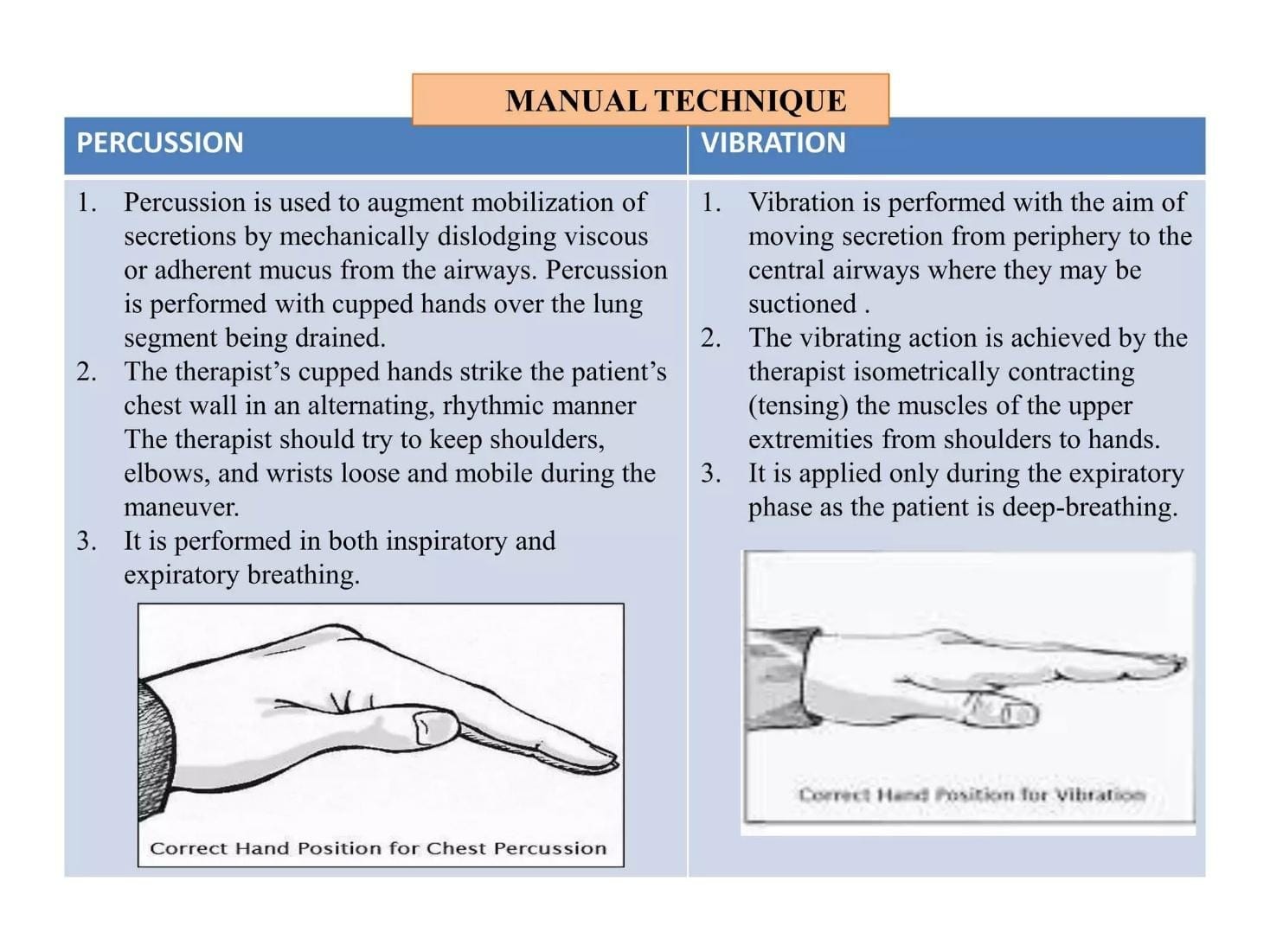 Also known as airway clearance techniques, help to get rid of mucus blocking the airways, hence the risk of inflammation and infections. Airway clearance techniques can be performed several times a day to loosen the thick mucus in the lungs, making it easier to cough up. More than one method can be used: