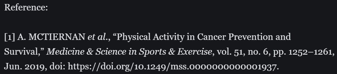 Decades of epidemiologic research have identified a physically active lifestyle as protective against the occurrence of some common cancers. A comprehensive review was conducted by the Department of Health and human services 2018 Physical Activity Guidelines Advisory Committee (PAGAC) to further investigate the effect of physical activity on the primary prevention of cancer.