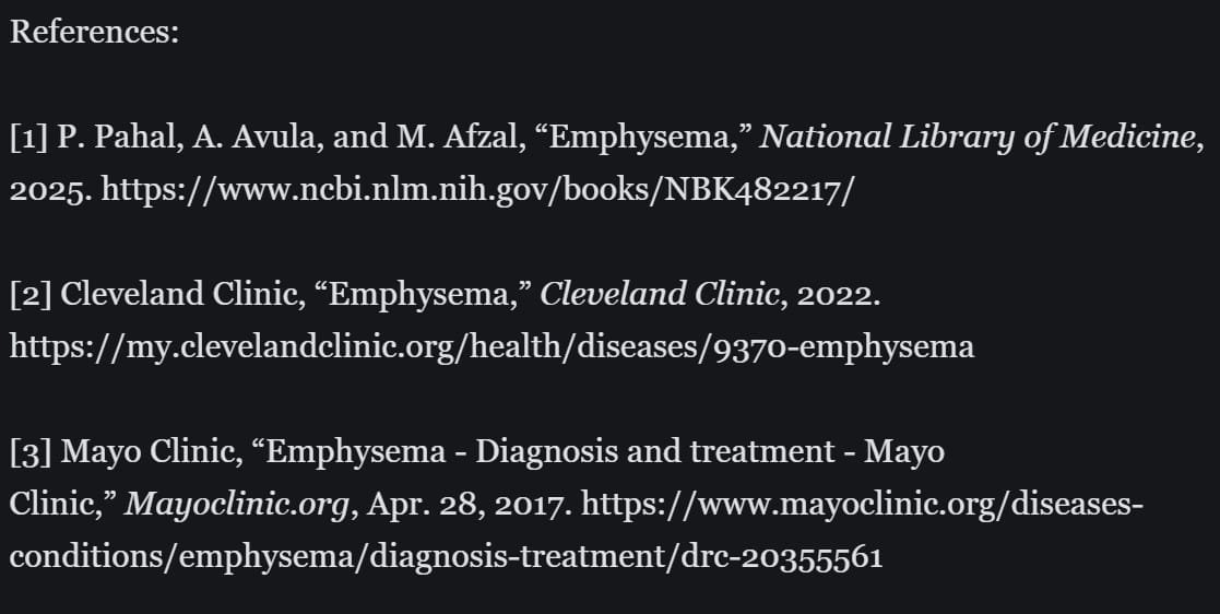 Pulmonary emphysema, a progressive form of chronic obstructive pulmonary disease (COPD), is characterized by persistent respiratory symptoms and airflow limitation resulting from airway or alveolar damage.