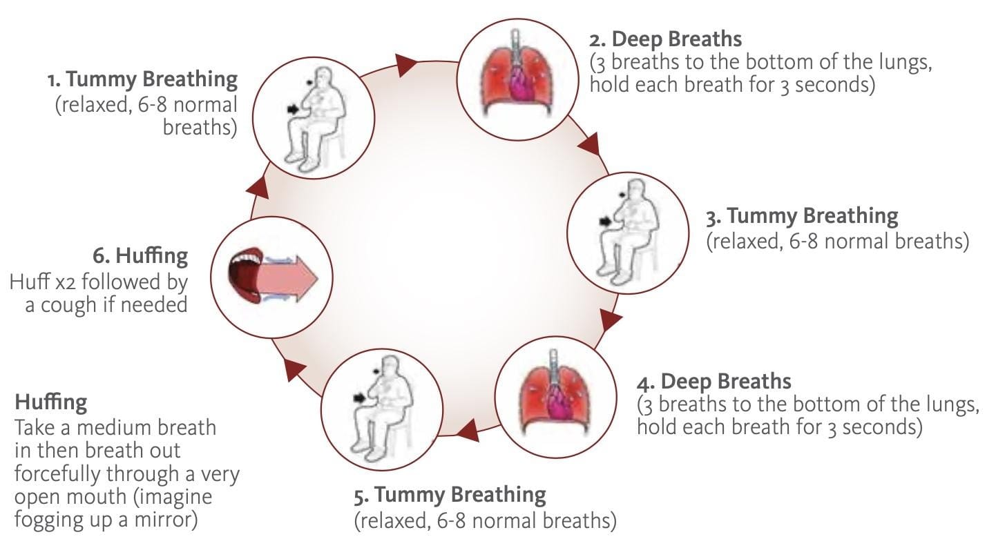 Pulmonary rehabilitation: Involves working with different professionals to improve awareness and education about managing the symptoms, exercise training, draining of secretions, nutrition advice, and counseling.