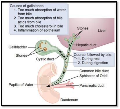 When gallstones are present in the gallbladder itself, it is called cholelithiasis. When gallstones are present in the bile ducts, it is called choledocholithiasis. Gallstones that obstruct bile ducts can lead to a severe or life-threatening infection of the bile ducts, pancreas, or liver. Bile ducts can also be obstructed by cancer or trauma, but this is not related to gallstones. (https://www.hopkinsmedicine.org/health/conditions-and-diseases/gallstones)