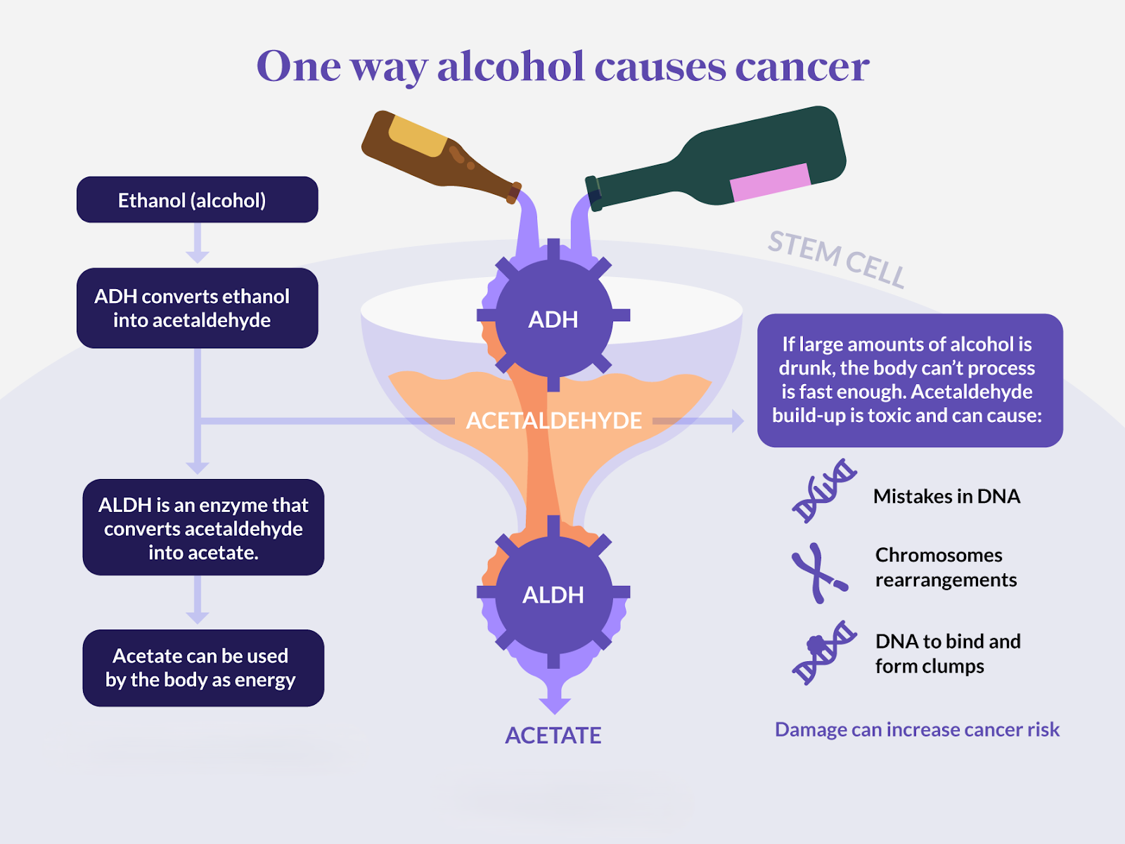 Acetaldehyde, a metabolite, is known to have carcinogenic effects such as: