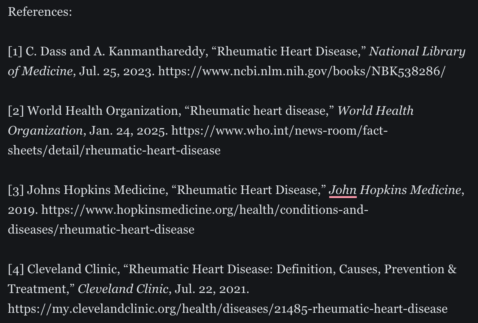 The World Health Organization states, “Rheumatic heart disease affects an estimated 55 million people worldwide and claims approximately 360,000 lives each year – the large majority in low- or middle-income countries”. [2]